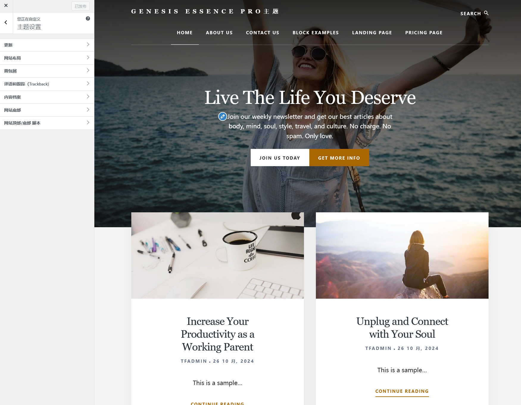 Genesis Essence Pro主题实例镜像截图