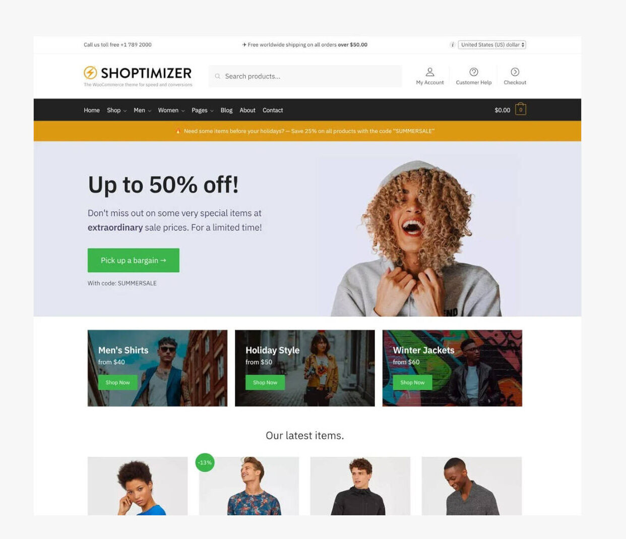 Shoptimizer WordPress上最快的WooCommerce电商平台主题
