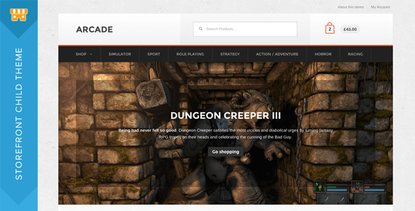 Arcade是一个Storefron子主题,其设计灵感来自网络周围的各种游戏和技术商店。它大胆而现代,包括独特的主页布局,专为以易于吸引的格式展示各种产品而设计。